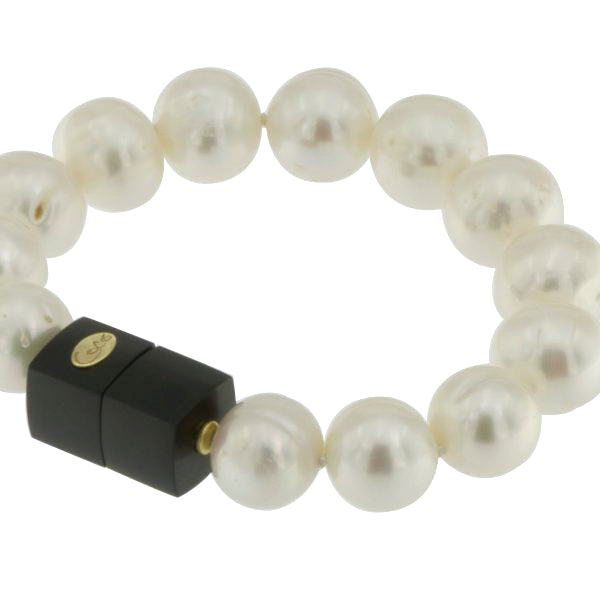 Bracciale firmato Fornieri Cocò Gioielli realizzato a mano con materiali di prima scelta: legno di ebano, argento 925 e perle naturali.