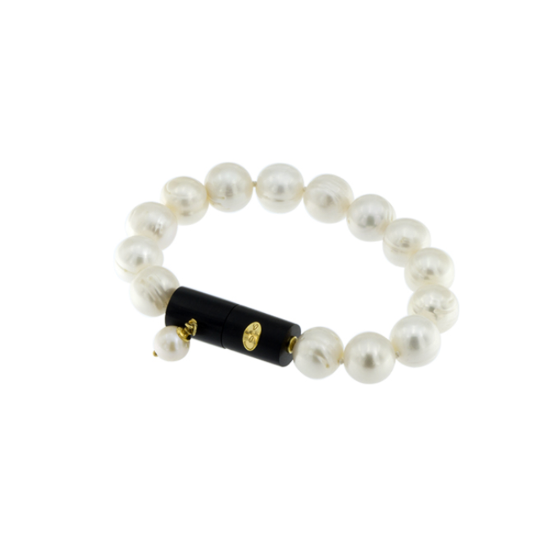 Bracciale di perle naturali ed argento sterling 925 con chiusura in legno di ebano e perla pendente.