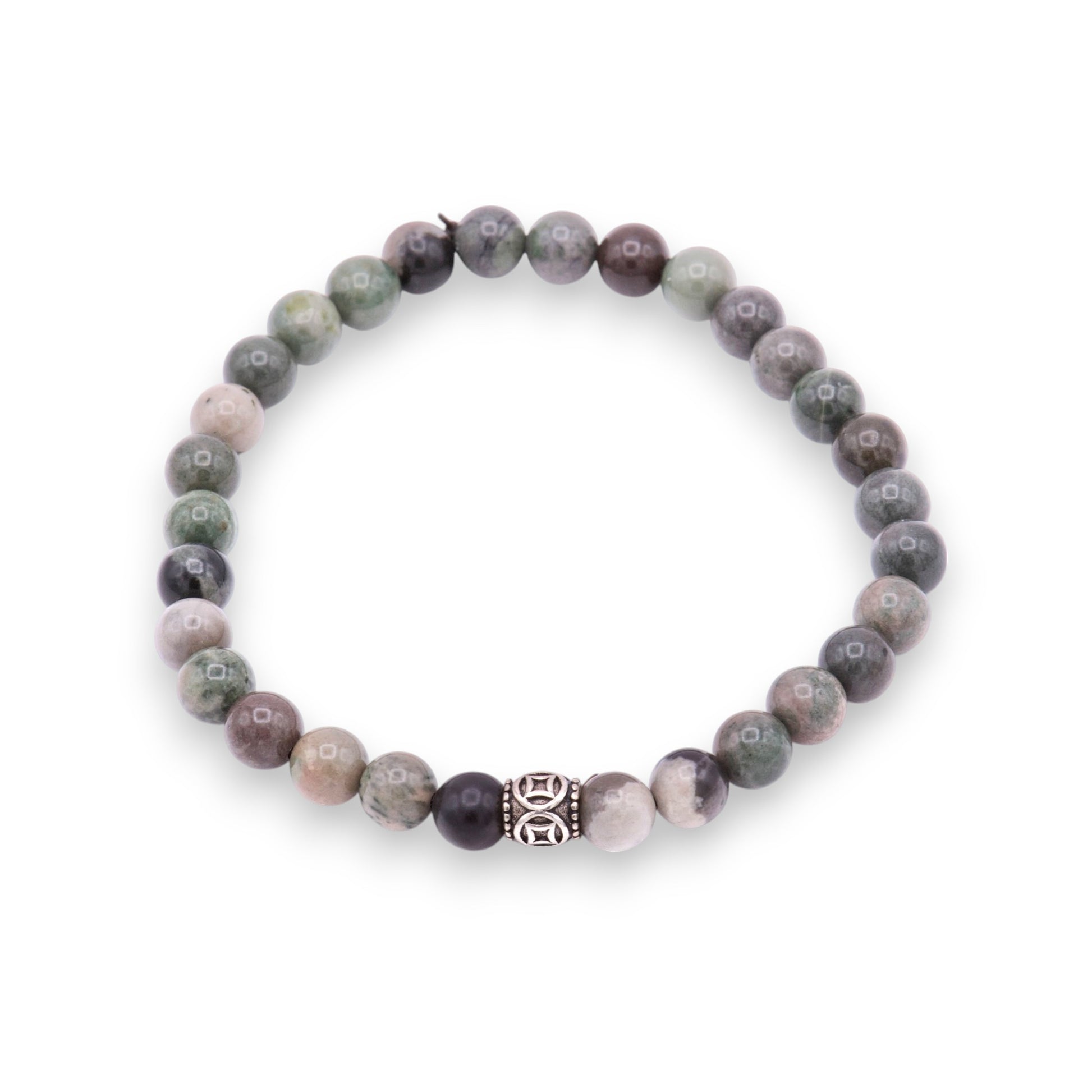 Bracciale in pietre di Diaspro Green Forest e bead centrale in argento sterling 925.