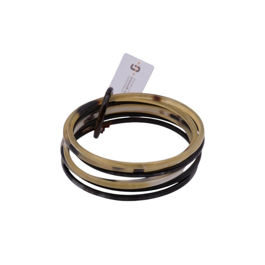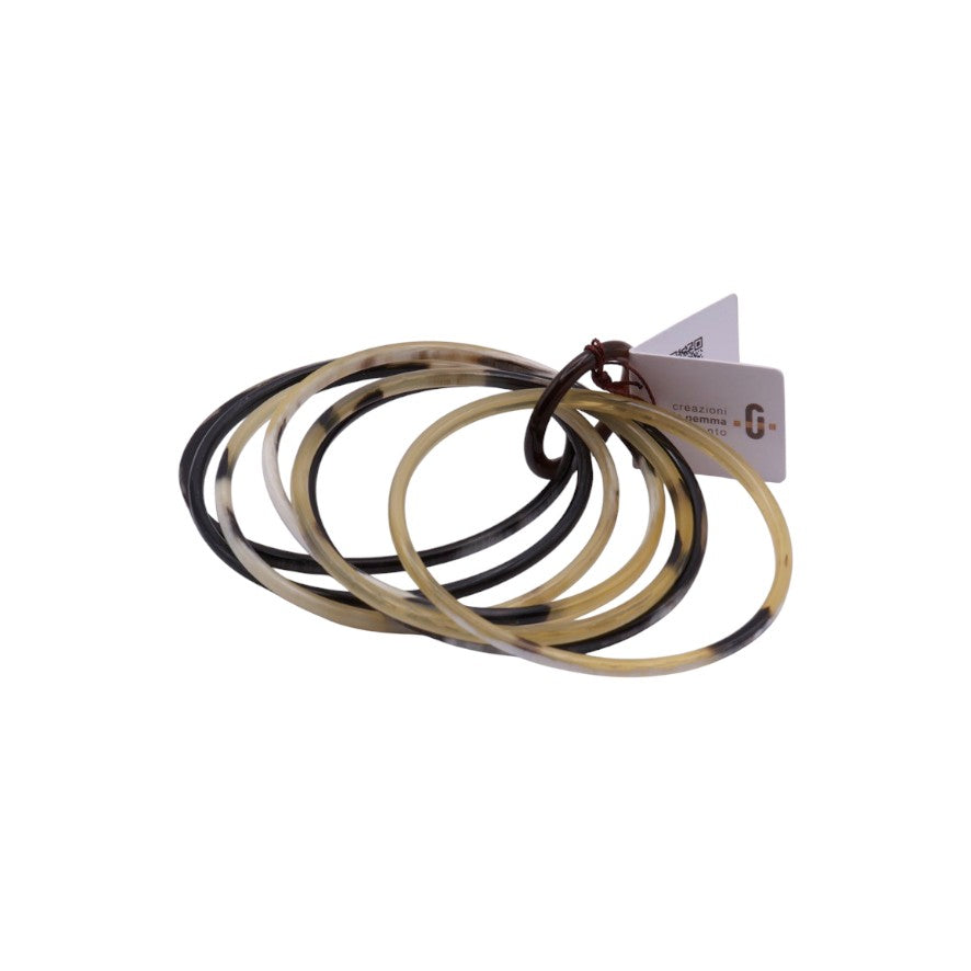 Le sfumature naturali del corno di bufalo danno inoltre, insieme alla molteplicità degli anelli, colore e vivacità.