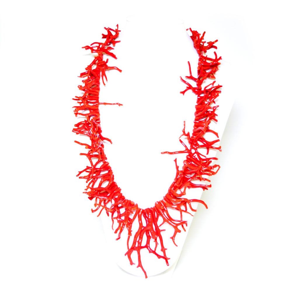 Collana di frange di corallo con chiusura in argento 925 placcato oro.