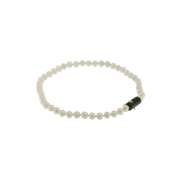 Collana artigianale in legno di ebano, argento 95 e per naturali da 9,5 mm l'una.