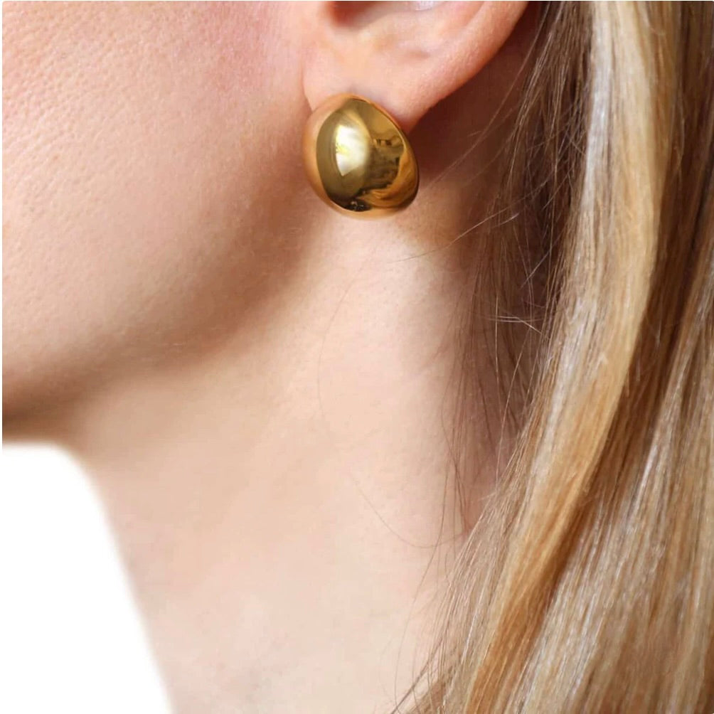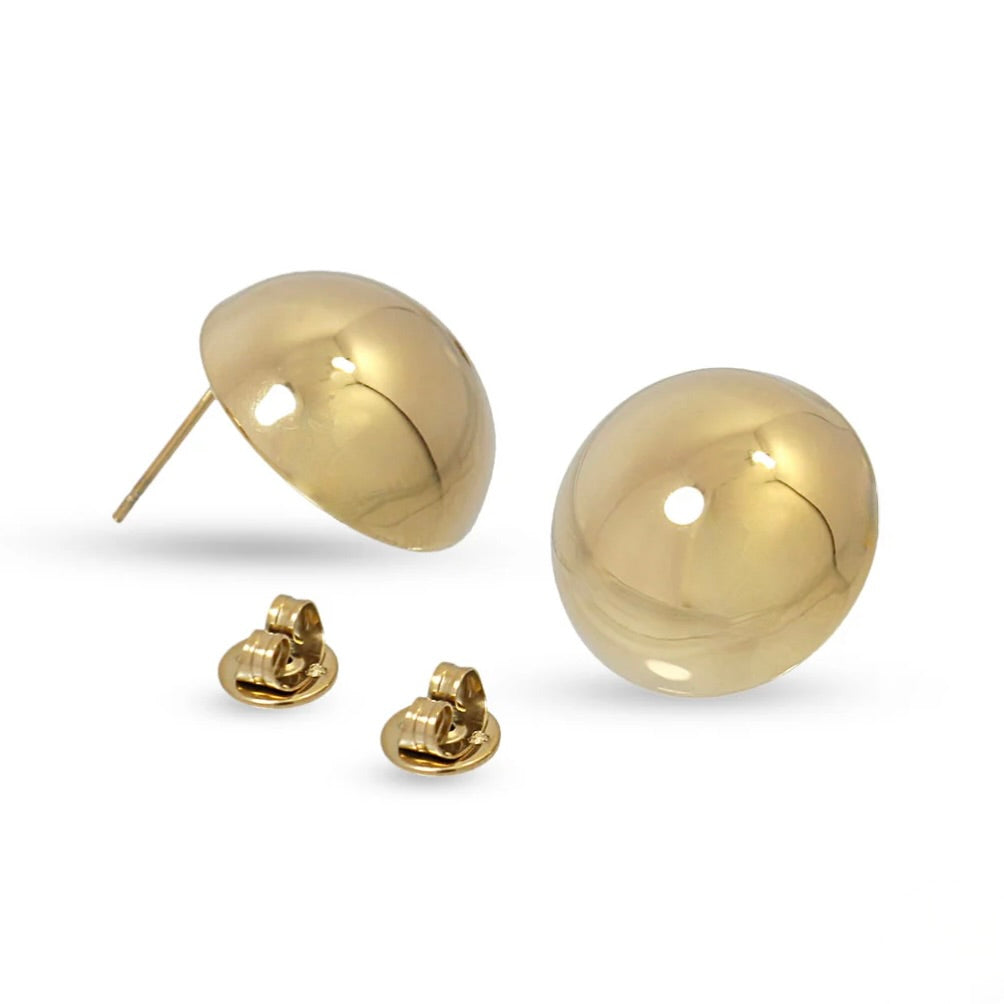 Orecchini a mezza sfera in acciaio chirurgico dorato.