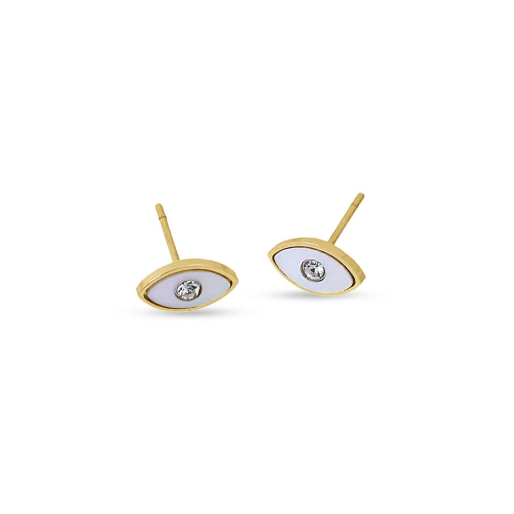 Orecchini a forma di occhio in acciaio chirurgico, conchiglia e zircone.