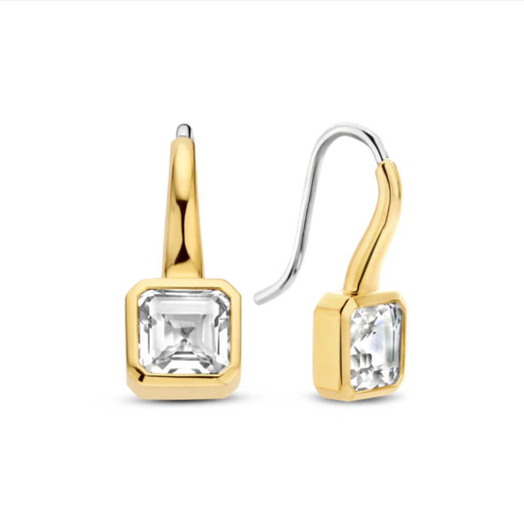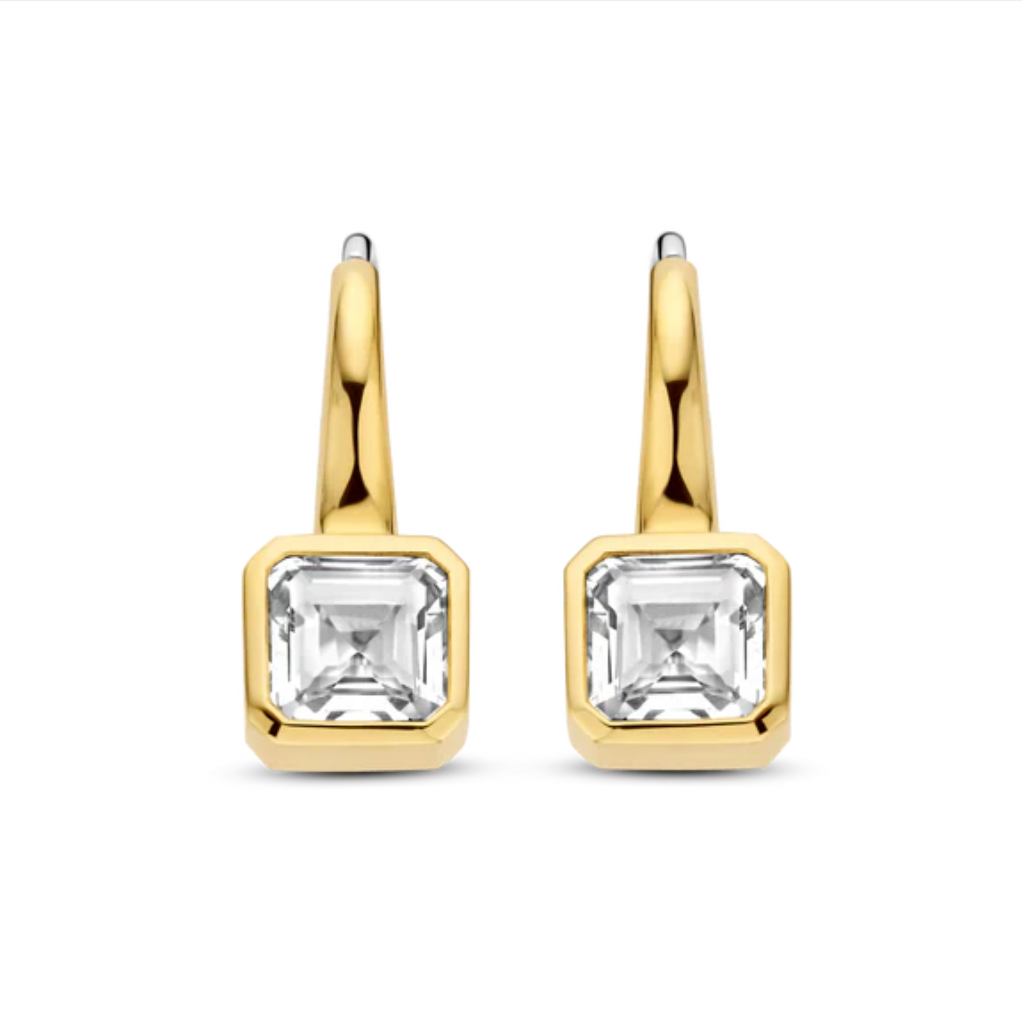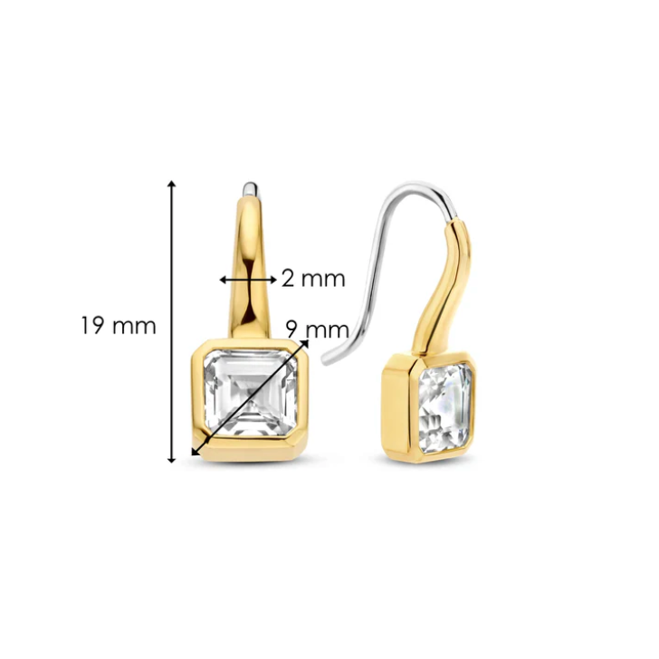 Orecchini in argento sterling 925 placcati in oro con zircone cubico quadrato incastonato a mano.